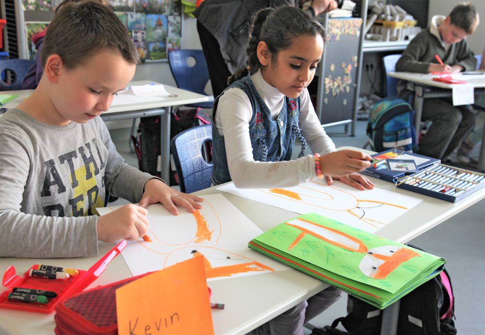 Am Ende der Geschichte dürfen die Kinder selbst einen Fuchs malen, so wie sie ihn sich vorstellen – egal ob jung oder alt. (Foto: Michael Will / BRK)