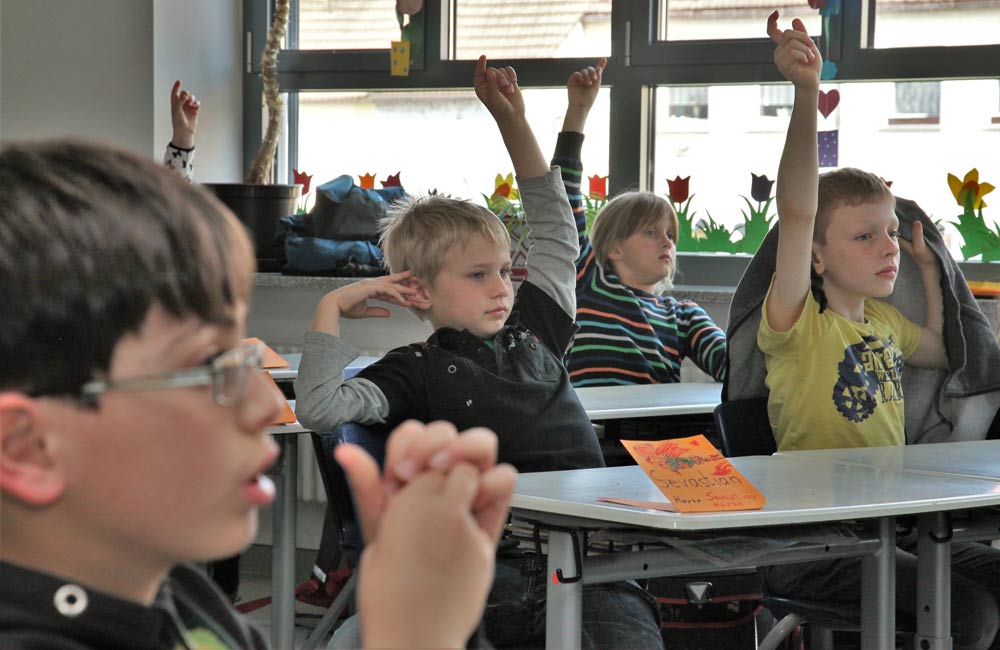 Demenz betrifft die ganze Familie. Eine Pädagogin des BRK bringt Kindern an der Grundschule Ebern das Thema spielerisch nahe.